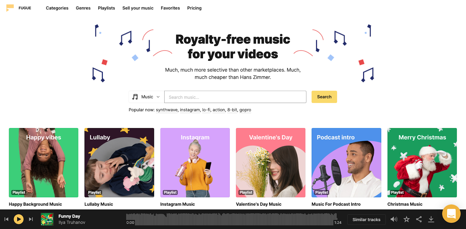 依場合、曲風分類,點進一首歌後可以按下「similar tracks」,快速找到相近的樂曲,先聽完、再下載,免費下載需注意僅可為個人用途且需付連結。