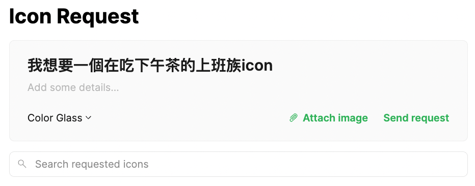 如果你發現,在這個超大icon圖庫中找不到任何心儀的圖案,可以按下「request icons」,附上範例,就有機會讓icons8團隊為你的需求打造icon。其他使用者可以投票「 ↑ 」或留言,越多人投票,你的需求越容易被看見喔!