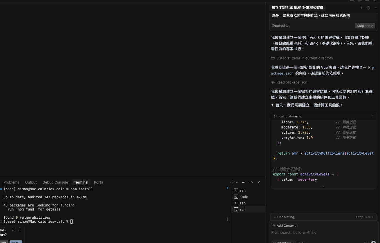上面建立計算器的整個過程,我幾乎沒有看程式碼除錯,都是交給 Cursor 依照指令執行,我也沒有去查看計算的程式寫的對不對,而是藉由操作表單去驗證結果是否計算正確。因此 Vibe coding 不需要您真的有強大的程式技能就可以開始執行。
