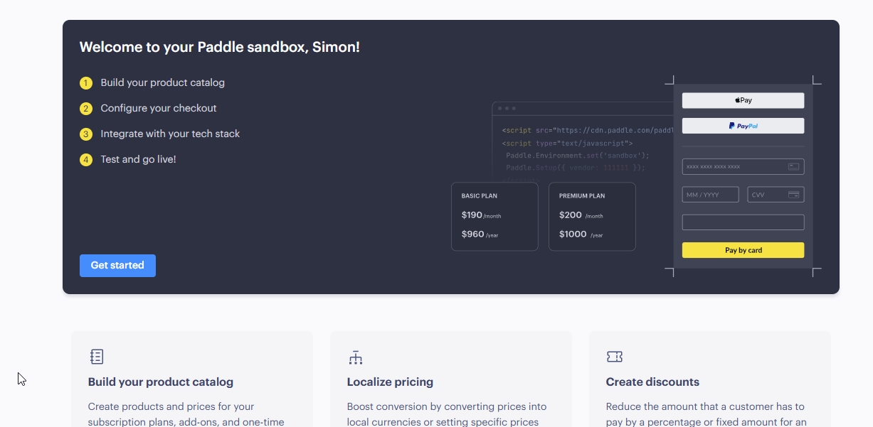 如果您要整合 Paddle ,不一定要有正式帳戶才能開始開發串接,可以註冊他們的 Sandbox 平台,功能是一模一樣的。